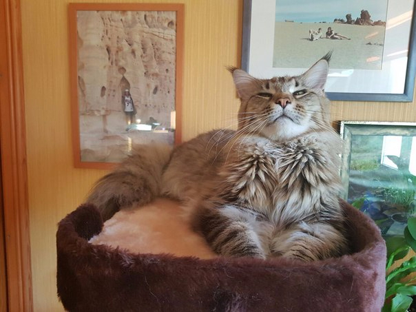 Мой полупородный британец теперь тоже почти мэйнкун)))) ласковый и терпеливый)) ковер с глазами))