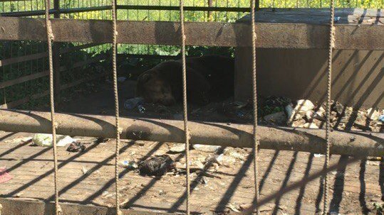 Спасите медведя, который вынужден жить в клетке в ужасных условиях