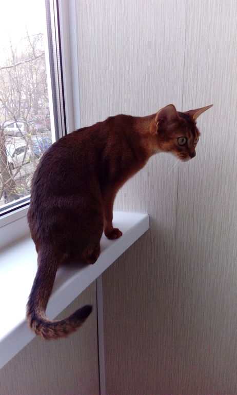 Жила в частном доме, наверное привыкла гулять по улице, отдали из за аллергии у детей и царапала машину. На улицу она давно смотрела,но гуляла по подоконнику,а вчера решилась. Мы ходили искали,звали. Пряталась в подвале,а сегодня утром явилась,под окном стояла мяукала. Сейчас лежит на окне,отдыхает,видать нагулялась))) Может еще не совсем нам доверяет, присматривается.