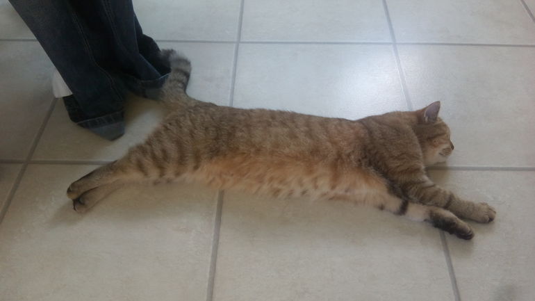 а спит вообще прикольно. мы угораем)) Сколько в жизни было у меня котов - никто так не спал. чешу его щеткой каждый день. гуляем на поводке, тк имеет привычку залезать под дом - а там тенек.. а его оттуда не вытащить - мы раз отпустили - он залез, и не вылезал день. даже пожрать не пришел. пришлось мужу лезть и его вытаскивать. А ему там привольно - тихо\сухо, его любимые мухи\комары - он за ними скачет))))