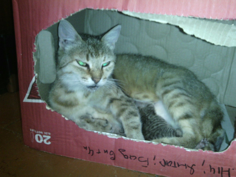 До сих пор он плодится (и как ей не лень ведь),старушка 5 дней назад родила снова) (при том,что два месяца назад у неё уже был приплод в количестве 4 котят)