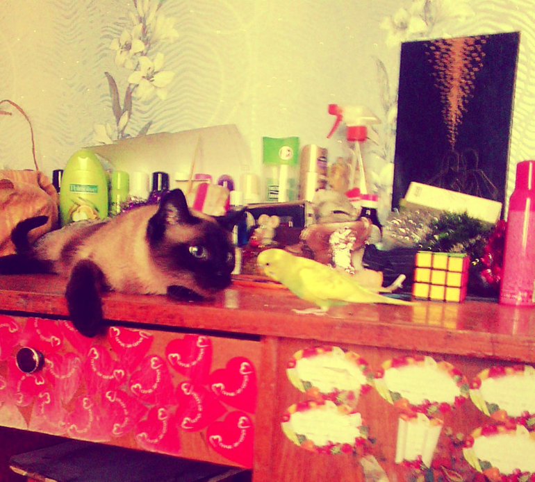 Это мой мальчик-попугайчик))Здесь на фото,он с Дашей))