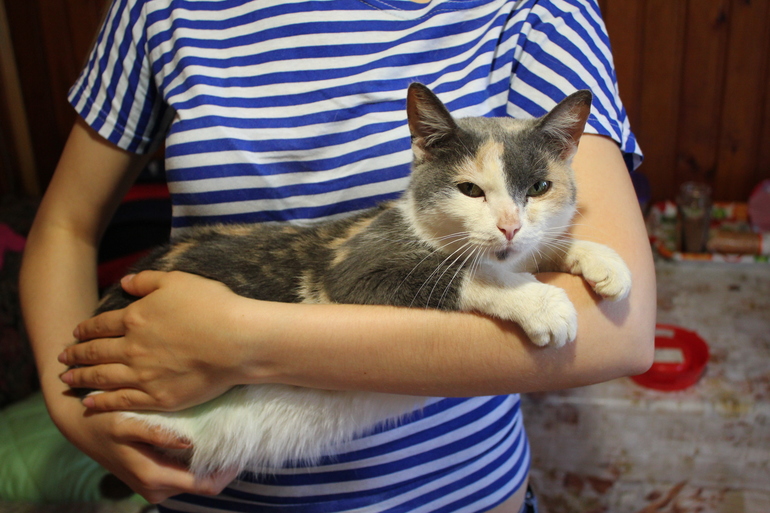Мура-Мурочка, ей 1 годик, очень ласковая, послушная, игривая девочка. Привита. Стерилизована. Мурочка бывшедомашняя, хозяева уехали и не смогли взять ее с собой.