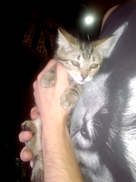 Этот малыш-Мальчишка, совсем маленький, его и 4-х братиков и сестренок выкинули в мусорный бак, выжил только он, выкармливала моя кошка. Пока в карантине.