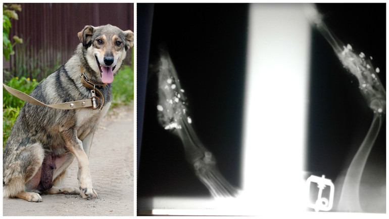 В Шанельку по всей видимости стреляли и в ее локте застряли металлические пульки или детали от разрывного механизма. Операцию, сделать не возможно, так как ранения и переломы были давно и образовался большой костный мозоль. Но на здоровье и подвижность эта особенность никак не влияет, просто девочка немножко хромоножка)