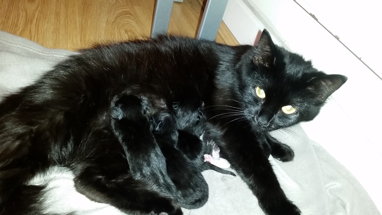 Ага, И все черные котята :) Но она сейцахс такая облезжая И замученная стала...похудела резко...
