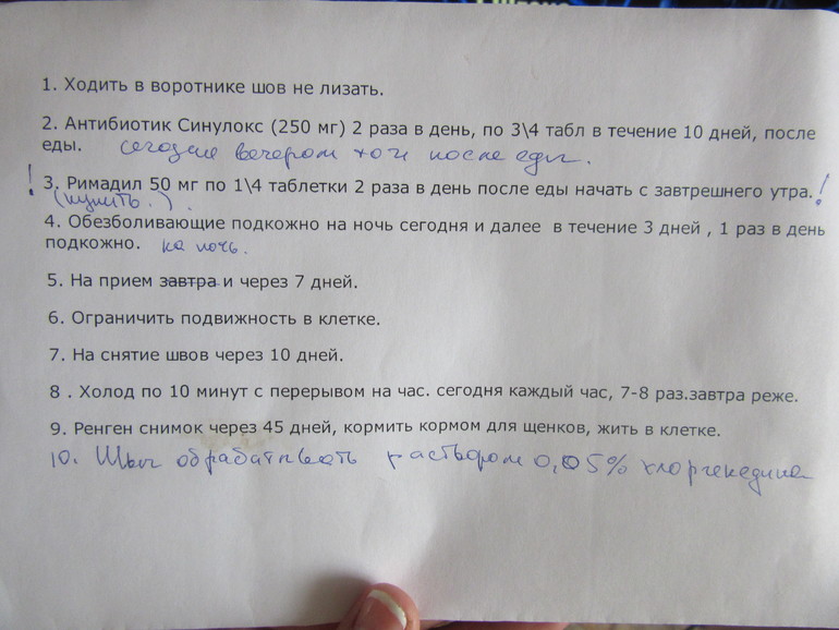 Уже утром в 8.45 я висела телефоне и звонила в эту клинику,дабы записаться на операцию.К сожалению, ортопед в это день не работал и записали нас только на следующий день.Но предварительно позвонили уточнили ему,точно ли он не сможет приехать прооперировать,жаль он отказал.Меня убедили,что еще сутки ничего страшного,как раз спадет вроде опухоль.К вечеру собака уже встала встречать мужа,даже запрыгнула на него.Покормлена была в 6 ч вечера.Спать уже пошла с нами в комнату.