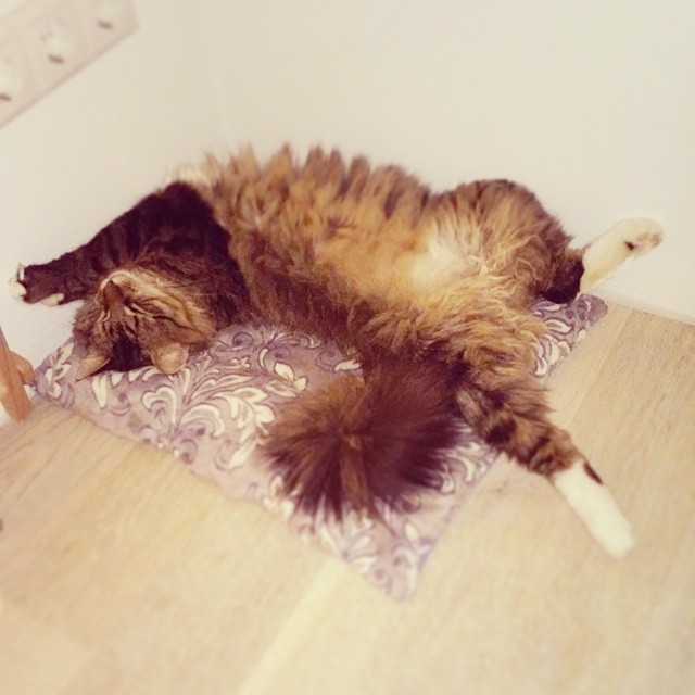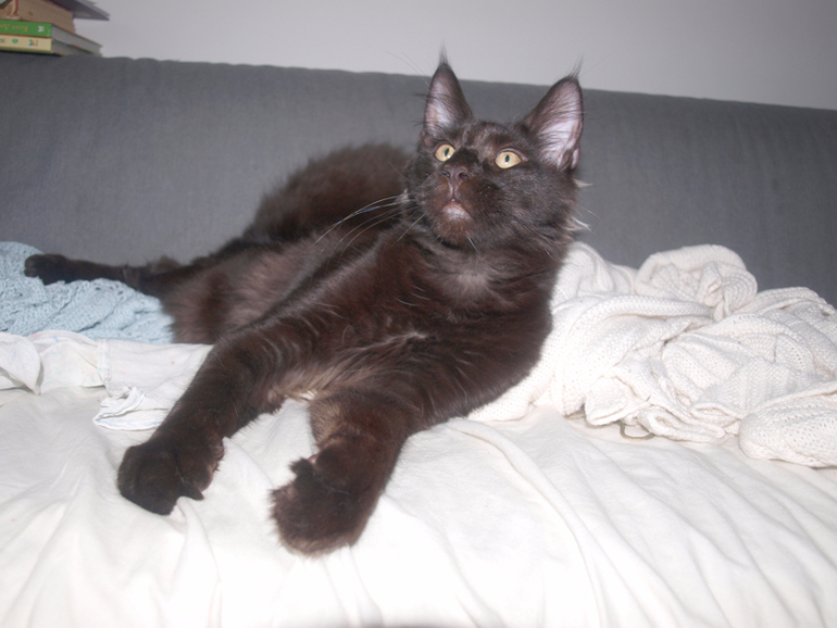 Что могу сказать. Порода действительно классная, шелковая шерсть, мощное тело, огромная конская голова с ушами-локаторами. Жрет в 1,5 раза больше взрослого Маки, выход соответственно тоже увеличенный. В 5:30 приходит топтаться по головам и мрррякать. Создает когнитивный диссонанс: на вид он взрослый кот, а поведение котёночка.