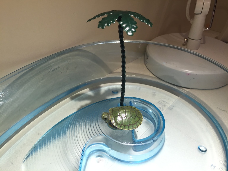 черепашке аквариум по больше нужен, в нем и вода меньше вонять будет и ему просторно и хорошо. плюс уф лампа нужна, что б панцырь рос правильным и красивым. а так сайт черепаха. ру. там про все написанно