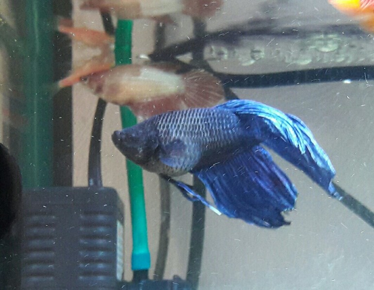 Рыбки, аквариумыДевочки, неделю наблюдаю за нашим петушком. Он с каждым днем все больше. Что с ним? Он заболел? Пытались не кормить 2 дня, но худее не стал. Вот фото: