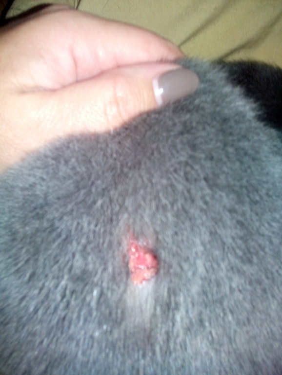 Может просто поранился? Я бы не носила к ветеринару. Состригла бы мех вокруг раны, промыла хлоргексидином и насыпала банеоцин. Посмотрела пару дней.