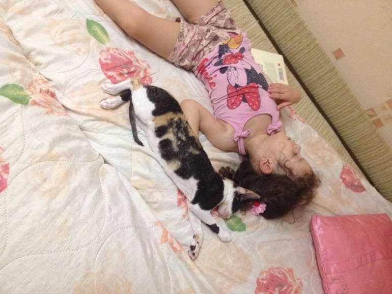 Дети и животныеНикогда не относила себя к собачницам или кошатницам . Но всеж песиков предпочитала больше, так это верный друг и товарищ, и ещё коллега по игре и разным озорным безумствам! А кошка- это уют и нежное мурчание на кровати. Конечно, для деток хотелось собачку, но понимала, что не смогу стопроцентно выгуливать два раза в день. Остановились на кошке, просто думала для терапии, что вот есть животное в доме, особенно среднему сыночку полезно будет. Взяли Корниш-Рэкса. О Боги, это поистину кошка с характером собаки! Как она несётся, когда кто-то приходит домой, облизывает руки! Как играет с детьми, бегает за ними по всей квартире, потом убегает от них. Сегодня среди дня тишина, захожу в детскую, сидят трое перед планшетом и Аляска четвёртая и все сосредоточенно смотрят релиз какой-то игры. Всегда рядом с детьми, всегда готовая поиграть и поговорить! Это чудесное создание! То , что она всеж таки кошачьего происхождения- напоминает наш подранный диван, но это уже наш выбор, точнее мой, дала на растерзание в надежде поскорее купить новый!