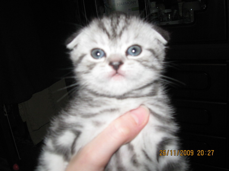 Продажа животныхВозраст 2 месяца, окрас NS 11 33, серебристая шиншилла, скоттиш фолд. Мальчик. Глаза голубые.