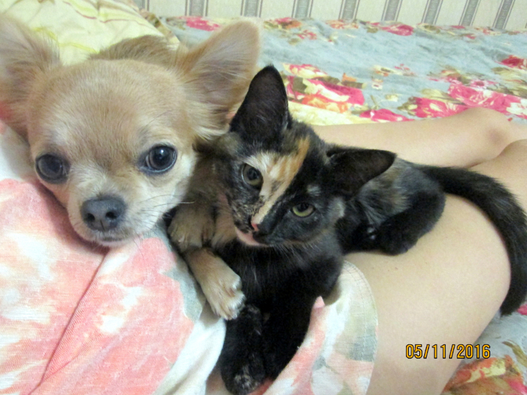 Оказалось что не из робкого десятка девчонка. при весе в 180 грамм она зашугала 2500 граммовую чихуахуа))) Сейчас они конечно дружат. Но когда пришла, она сразу стала ставить себя в обществе)))