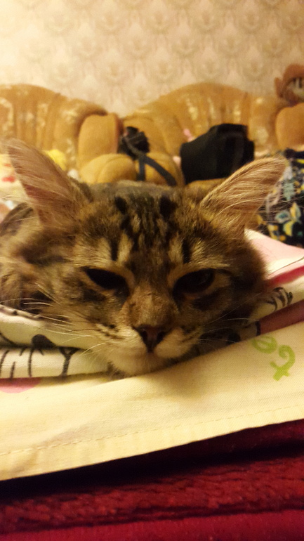 Классная))) все таки все эти шпротовые коты похожи чем то(это я так полосатиков дворовых называю))) чем болеет? У меня у мамы кот уже 13 лет живет,мкб лет 7-9 мучается(((