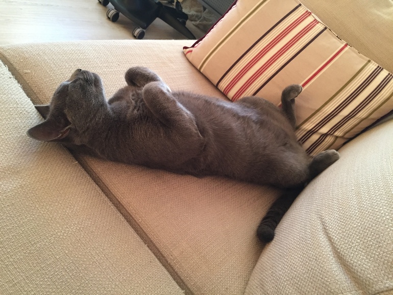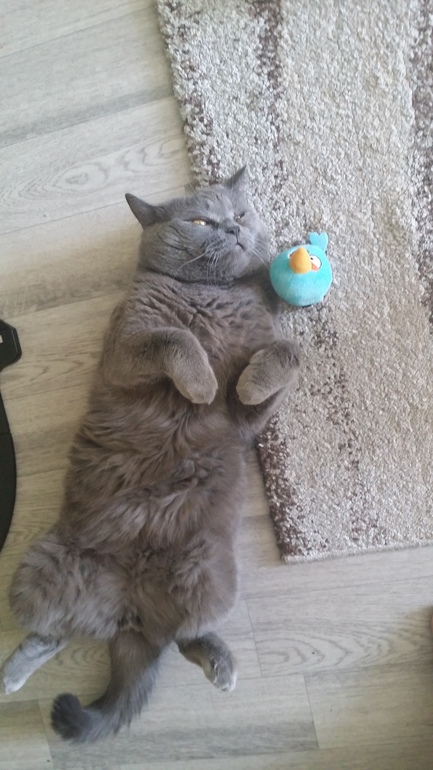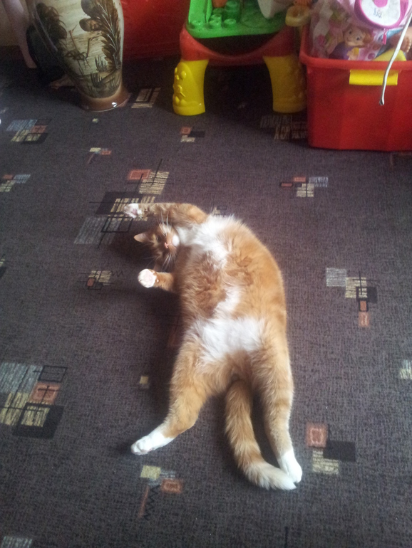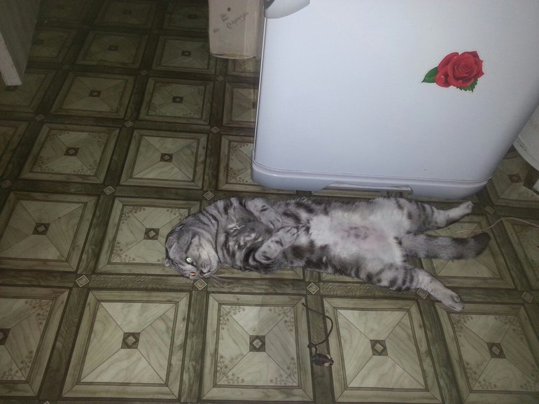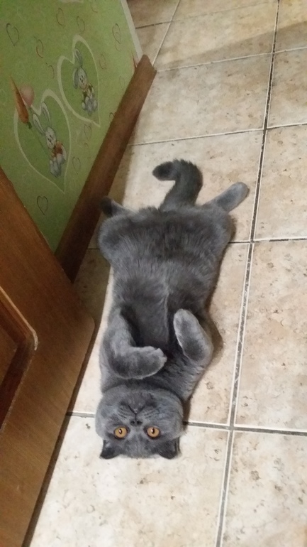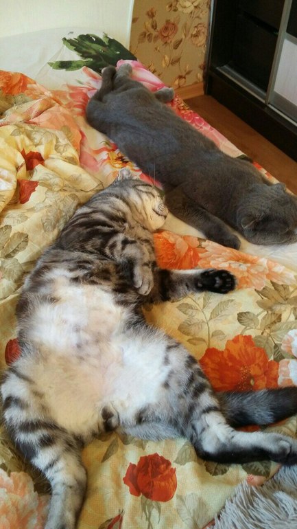 Это мы в гостях) Он у нас себя везде как дома чувствует))) У нас ночью другая история - он приходит ко мне и тянет волосы или лицо трогает лапой, чтоб вставала его покормить)
