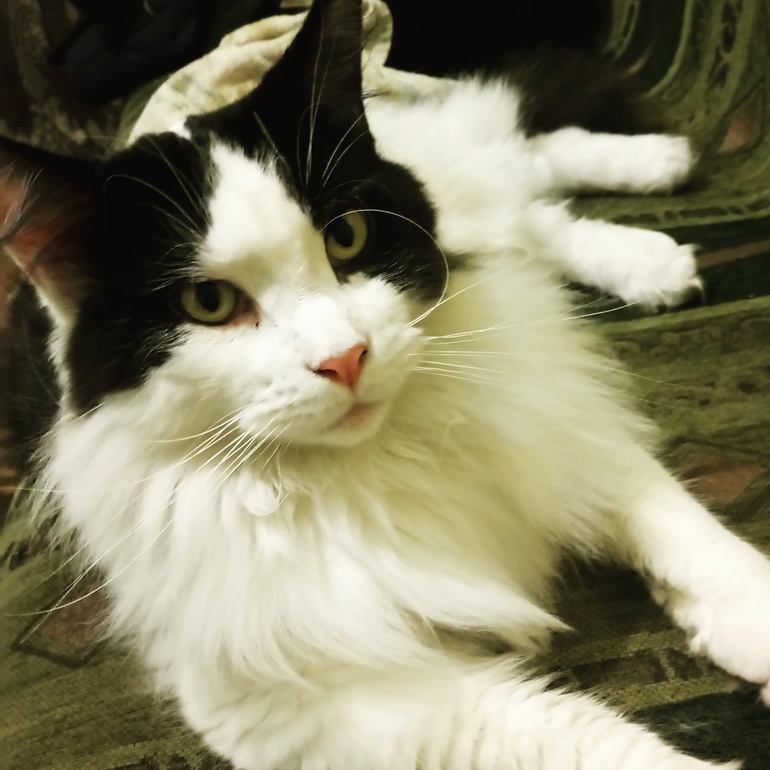 Наши любимцы!Кошки в доме были всегда, сколько я себя помню. В прошлом году у нас украли персидскую кошку. Чуть больше месяца назад взяли мы с сыном из питомника годовалую кошку, стерилизованную. Зовут её Ванесса Мэй. Питается наша красавица натуралкой, шейки и головы куриные, сердце свиное, посыпаю это отрубями. Ест хорошо. Вот она наша красотка.