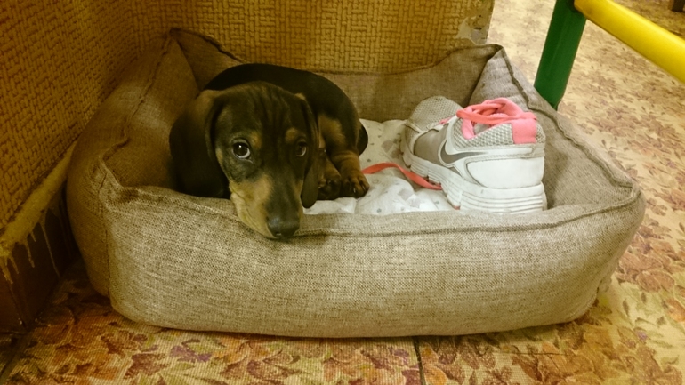 При этом стоит впустить Сиднея к нам в комнату с ковром, как все!! тут же надует на ковер. Так что пока наша спальня для собаки недоступна.