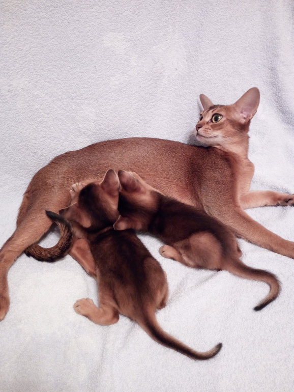 Обычно они принимают малышей. Хотя особо вредные особы встречаются. Шерсти очень умеренно. Потому что у аби короткая и прилегающая шерсть. И я склонна считать, что просто так шерсть не должна сыпаться у благополучной кошки. Если есть хорошее питание и кошка не испытывает стрессов, то все хорошо должно быть с шерстью.