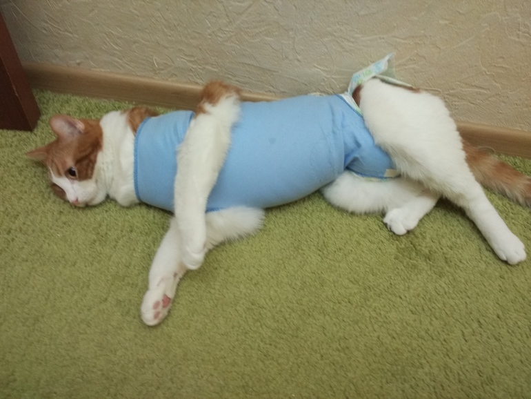 Приехала я с котом домой, все норм, ходит в лоток, присаживается ( но он в подгузнике), воды попил. Лег спать. Я только отошла от него, муж пошёл на кухню, говорит, кот в прихожей без подгузника вылизывается. Он всю трубку вытащил, остался катетер, пришитый к причинному месту. Звоню вету, срочно еду к нему, пытается повторно ввести новый катетер-не получается....Пришлось делать наркоз легкий, так как кот уже не терпит, как в первый раз... Зашили катетер, подгузник одели, попону, кот очухивается. Опять несколко инъекций- сердечные и еще что-то...Еду Домой. Дома через 3 часа меняю подгузник, промываю через катетер хлоргексидином, повторный укол, который 2 раза в день. Ночь спал хорошо, утром проснулся, ходил периодически в лоток. Стул был вчера , обычной консистенции. Сегодня не было стула. Поменяли подгузник, опять сделала шприцом промывание я, но моча так и выходит с кровью. 5 уколов утром и полтаблетки, и один укол и полтаблетки вечером. Вечером меняли подгузник третий раз, моча все равно с кровью. Муж говорит, что у него может поврежден мочевой пузырь, через катетер не должна кровь выходить. Говорит, завтра в другую клинику надо везти к другому врачу. Девочки, что вы скажете? Кот спит в основном, но кушал сегодня сухой лечебный корм и пил....Фото корма и какое лечение прописали, посмотрите, пожалуйста. Ехать нам в клинику?