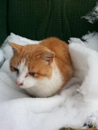 Возле нашего подъезда несколько недель замерзает рыжий кот. Его удалось переселить в подъезд. Но ему срочно нужны хорошие хозяева.