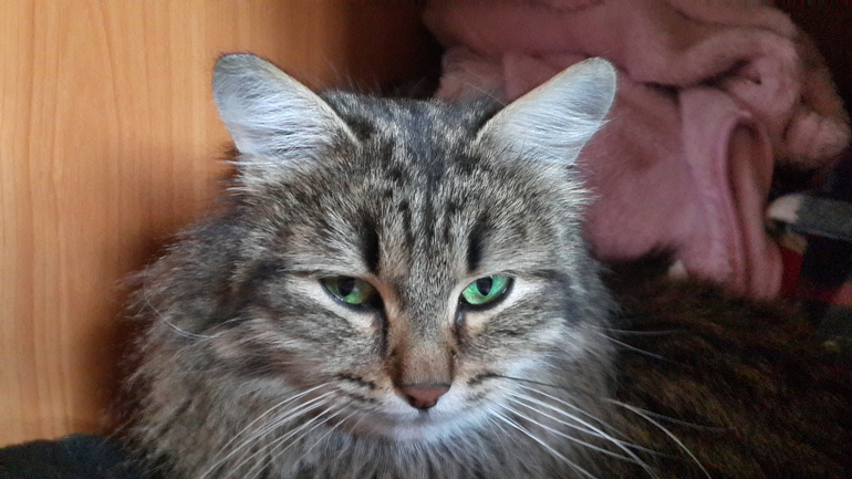3) кошка Рысь, была найдена живущей в морозы на улице на картонке у зоомагазина, пристраивалась с ПИКа, я влюбилась в эти нереальные изумрудные глаза и вот она уже несколько лет наводит шороху в нашем доме))) Кошка - гладиатор, самая маленькая и самая драчливая во всем стаде