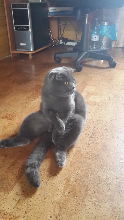 4) ну и последний, самый чудной (от слова "чудило") член нашей семьи, шотландский вислоух-отказник, мы назвали его Гуччи или просто Гуч. Меланхоличный, любящий необычные места ночевки и необычные позы сна, красивый и тупенький котик, вызывает умиление и смех у всех