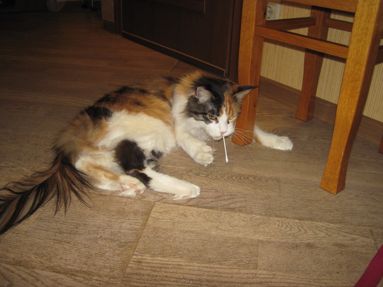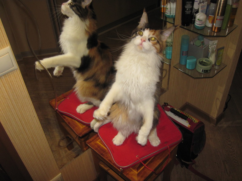 Попыталась запечатлеть, как Поля караулит и клянчит ватную палочку. Она девушка умная, знает где они лежат ))) И как только я заглядываю в тот шкаф, то она ни на шаг не отходит и очень убедительно выпрашивает радость, изображая суррикату :)