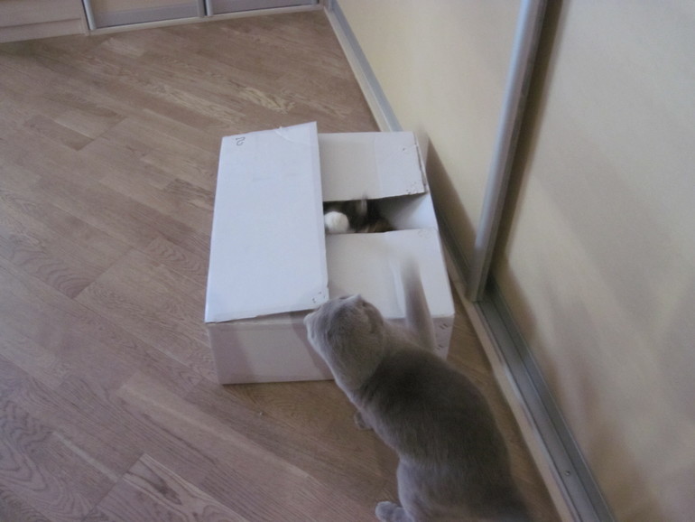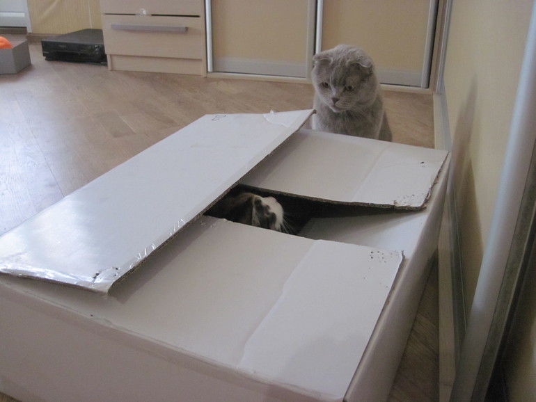 Коробка от люстры настолько полюбилась кошкам, что пришлось выкинуть ))) Активные игрища в ночи не очень сочетаются с крепким сном остальных домочадцев ))
