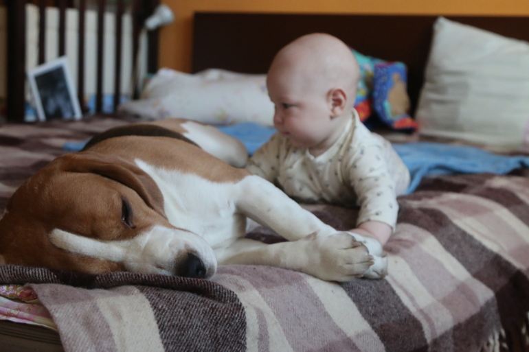 Такие клевые оба! Ребёнок должен расти рядом с животными, это абсолютно нормально.