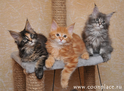 вот Мейн кун, а то беспородные котята. Ни кисточек на ушах нет и морда другая.