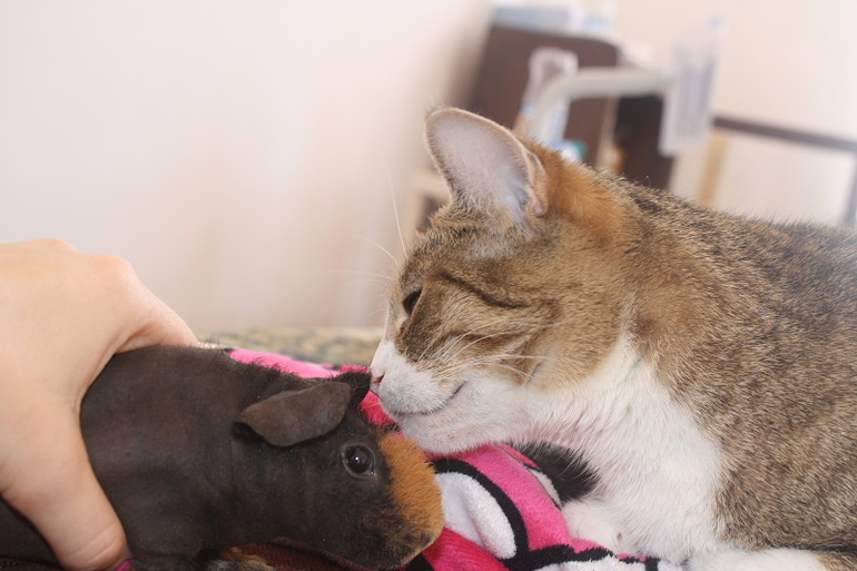 Я по первой фотографии и не поняла кто это)) думала голова кошки что ли с чем то прилипшим ряжего цвета. А это оказывается вон кто, свинка, да ещё и морская.