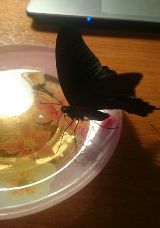 Вот видите, хоботок в сироп опущен, это она так кушает.