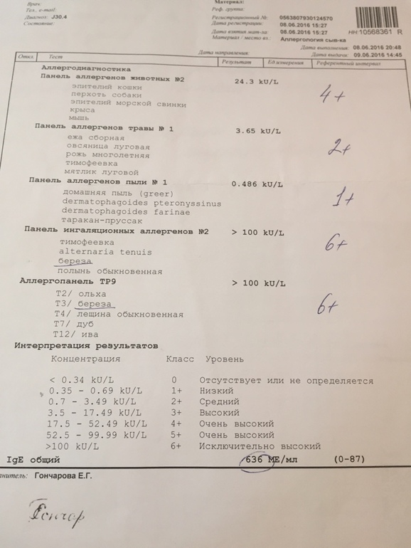 Наша аллергопанель выглядит так т.е. на животных реагирует сильно((, еще печальнее только цветение березы...