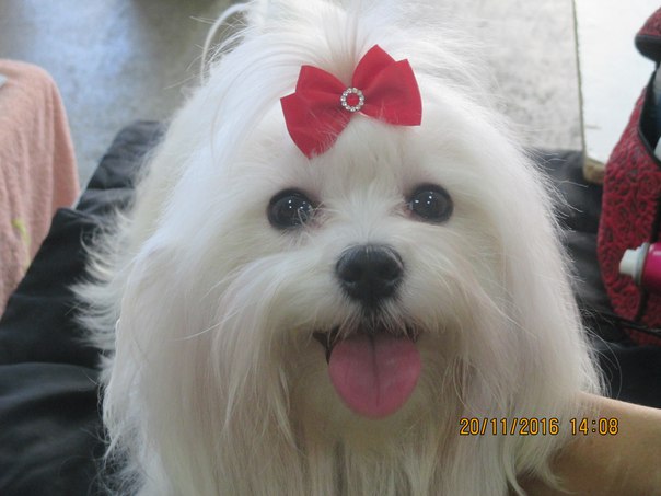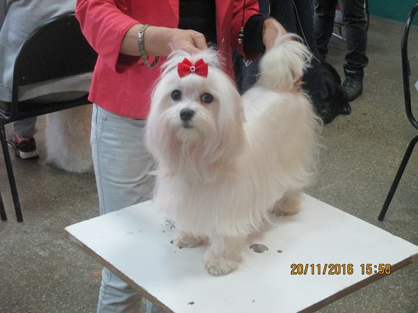 Моя красавица мальтийская болоночка, очень хорошо показала себя на выставке, радостно бегала за хендлером, очень понравилась судьям!:))