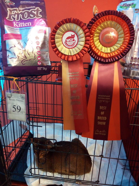 На Шоу абиссинской породы она стала лучшим котенком. Эллиот стал лучшим взрослым котом.