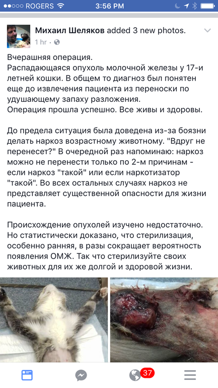 Распадающаяся опухоль молочной железы у 17-и летней кошки. В общем то диагноз был понятен еще до извлечения пациента из переноски по удушающему запаху разложения.