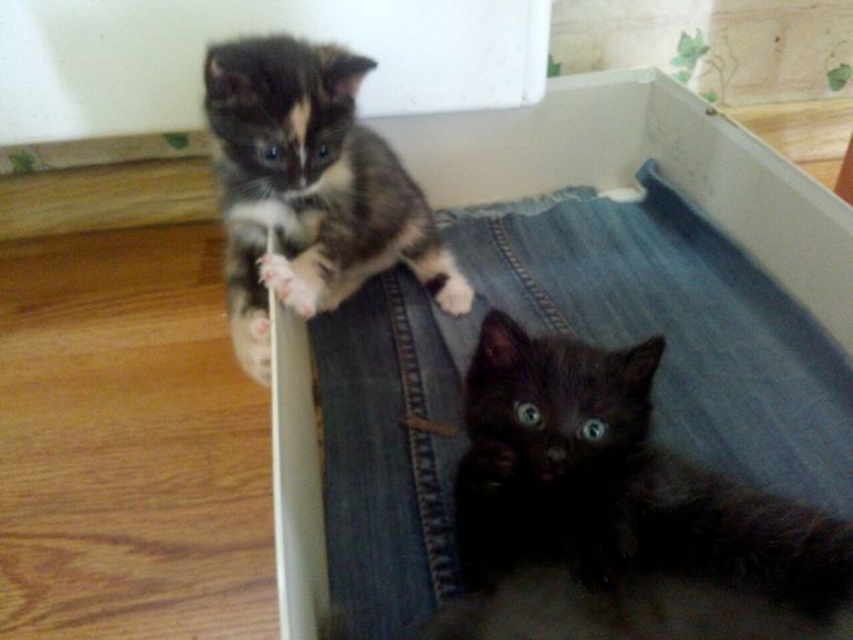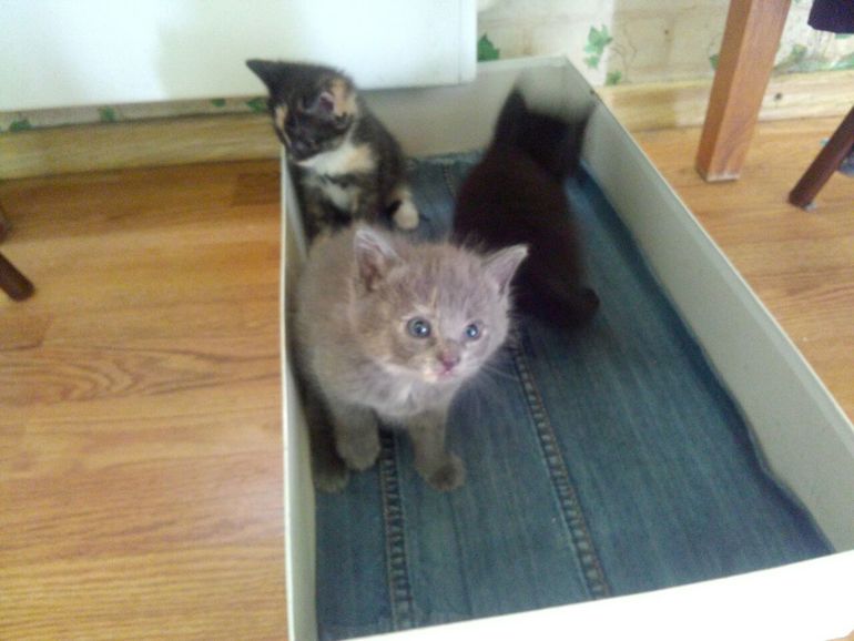 Три котенка, все девочки и мама-кошка. Предположительно, они домашние, так как сразу стали ходить в лоток, т.е. уже приучены кем-то. Кушают сами. Нужен дом для котят и мамы. Котята и кошка ручные, игривые и озорные. Малыши во всю резвятся, дети, одним словом!