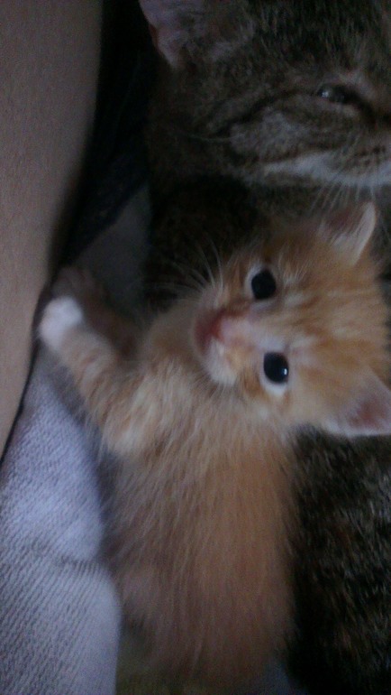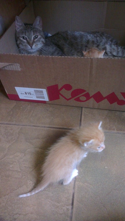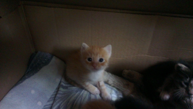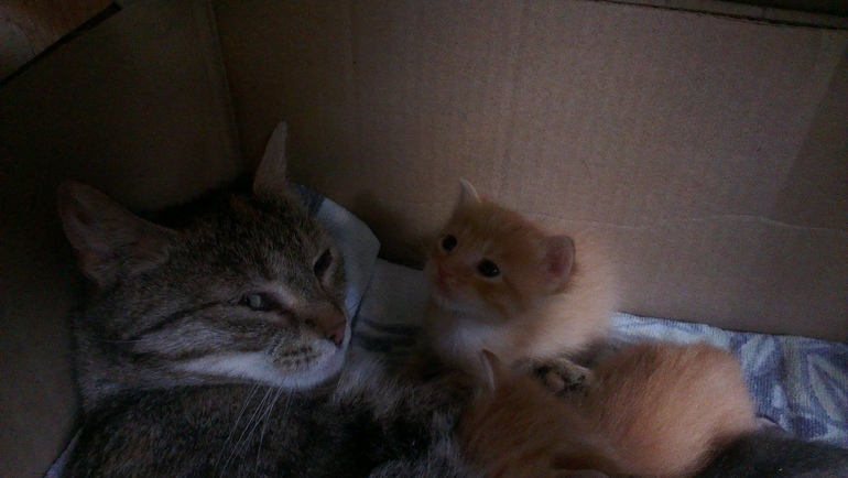 Это детки от первой кошки. Рыжие девчоночки, мальчишки-полосатики
