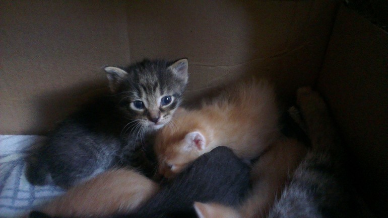 Младших котят спасли буквально за несколько минут до смерти. Котят побольше выкинули на улицу вместе с мамой. Но главное, что их всех сберегли, им дали шанс.