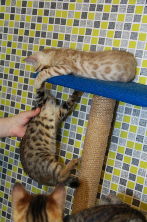 Котяткам 2 месяца , они приучены к лотку и когтеточке , самостоятельно кушают. Не дикие, здоровые, очень активные.Окрас розетка на золоте, пятно и снежная девочка.Маму и папу котят Вы сможете увидеть у нас. На момент продажи- дегельминтизированы и привиты. Паспорт и договор купли-продажи.Приезжайте знакомится ! Не питомник!!! Все вопросы в личку.