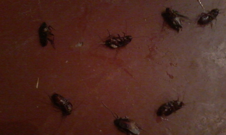 в час ночи сегодня зашла на кухню и увидела УЖАС , штук 50 чёрных насекомых (то ли жуки,то ли тараканы, но не прусаки точно), разбежались во все стороны, несколько удалось прибить, дальше на фото