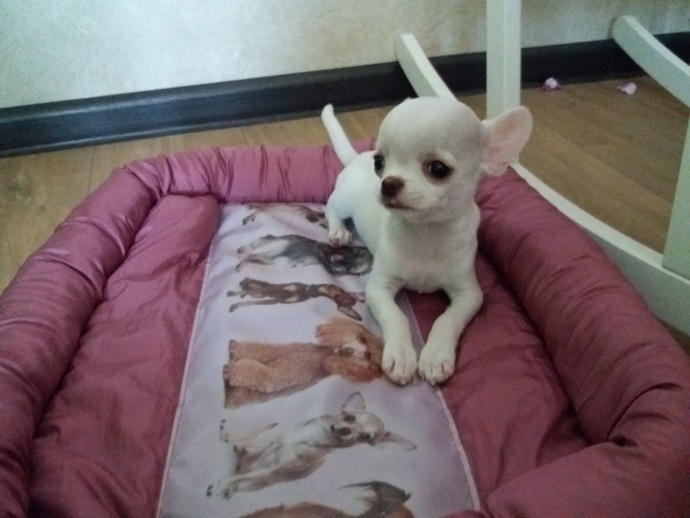 Наши любимцы!Уже 10 дней как маленький песик породы чихухуа живет у нас ! Мы очень долго шли к его появлению у нас в доме, долгие уговоры дочки, несчастный случай с дочкой после которого и дали согласие, затем поиски (почти пол года) щенка белого либо кремового цвета т.к. Изабелла именно о таком мечтала и еще 2.5 месяца ожидания пока его можно забрать будет. В общем наш малыш Пинч, размер стандарт вероятнее всего :)
