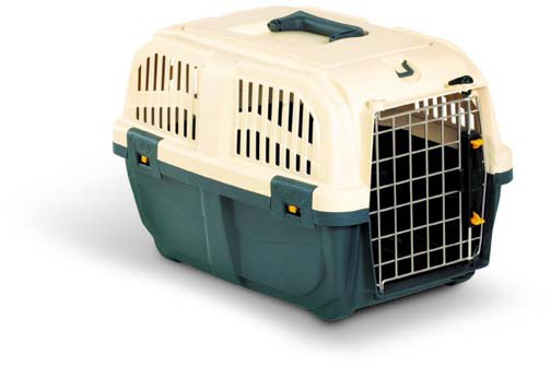 К нас как на первом фото с металлической дверцей, только без вентиляции сверху. Кошки в такой переноске путешествовали по России и даже переехали в Австралию. Удобные, прочные, легкие. Рекомендую.