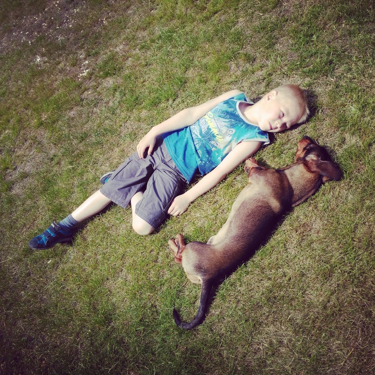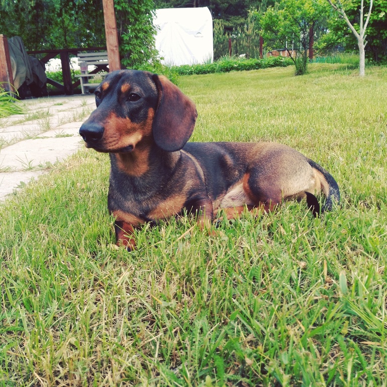 Наши любимцы!Не знаю , что там с охотой у собаки, но компаньон Сидней_такса прекрасный!