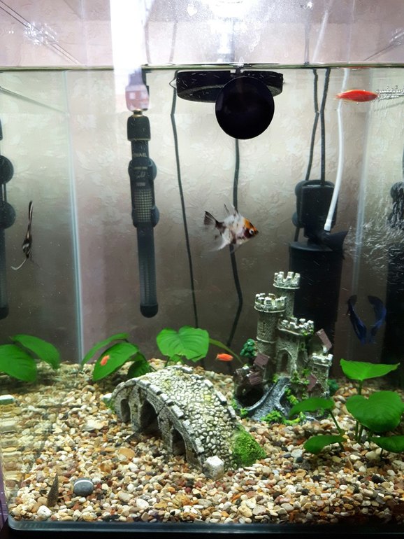 Вот и мы начали с маленького аквариума, а теперь муж притащил на 60 литров, вот ждёт своей очереди