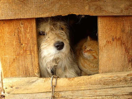В собачьей будке пёс и кот при нём.