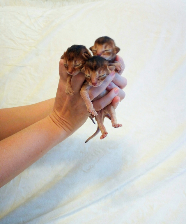 я котят с первых минут беру в руки. А эти уже большие, им несколько часов)