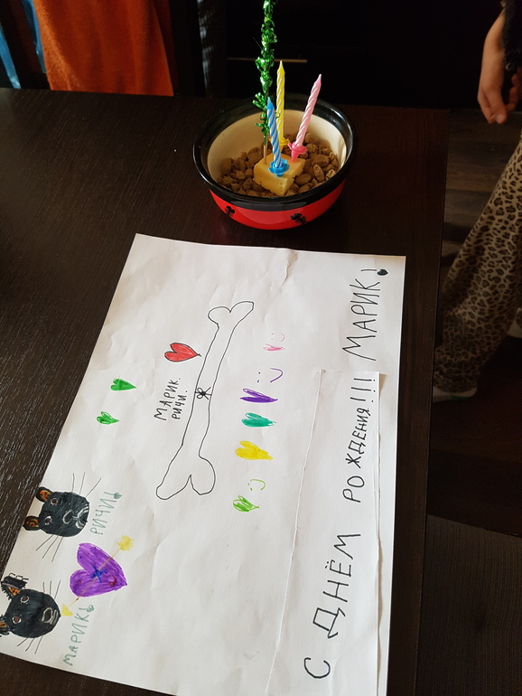 Пы.сы: да мы те самые больные на всю голову люди для которых собака=член семьи! И да мы отмечаем др... и да ребенок рисует им поздравительные открытки... я никого не принуждаю делать тоже самое... это наши традиции... так что мимо со своими нравоучениями 😋