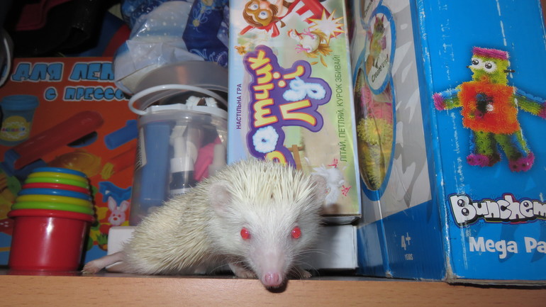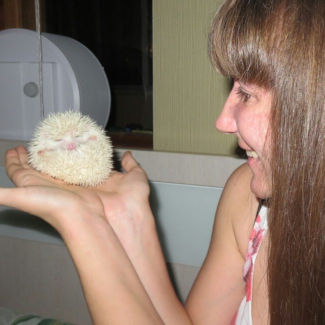 Привыкал он к нам недолго, за неделю адаптировался. правда успел меня цапнуть 2 раза до крови. я конечно его потом боялась брать на руки несколько дней. Больше он не кусался. Дети с удовольствием играют с ним, это конечно сложно назвать игрой, но с удовольствием берут на руки и возятся. Ёжик конечно бывает с разным настроением, может легко даваться на руки и иглы вообще не выпускать, а бывает, что и фырчит во всю, колется, сворачивается в клубок растопырит иголки, мол не подходи... )) Один раз в неделю мы его купаем, наливаю в тазик немного теплой воды и просто водичкой аккуратно поливаю на иголки. Он не очень любит водные процедуры, все норовит сбежать. Но после купания у него иголки становятся мягче и переливаются и такой пушистик получается с виду.